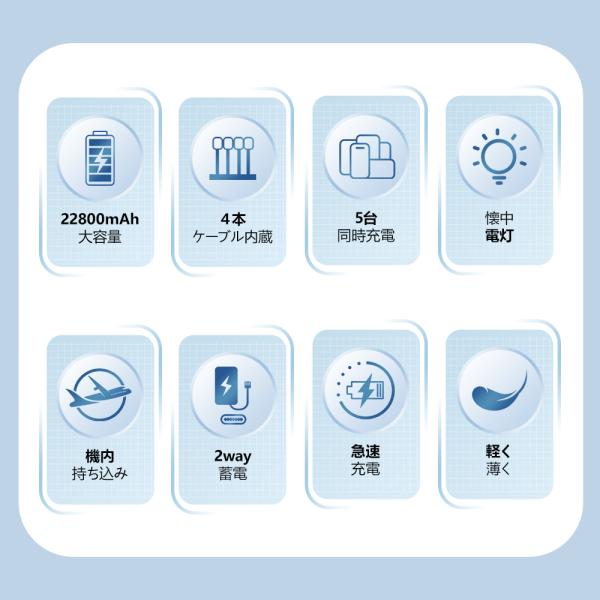 【レビュー特典】 モバイルバッテリー iPhone 大容量 小型 軽量 22800mAh 薄型 5台同時充電 急速充電 5v/2.4a スマホ充電器 4本ケーブル内蔵 iPhone Android対応