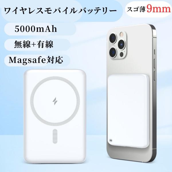 モバイルバッテリー ワイヤレス MagSafe対応 磁気 超軽量 薄型 小型 マグネット 大容量 ミニ スマホ充電器 急速充電 コンパクト マグセーフ PSE認証 5000mAh