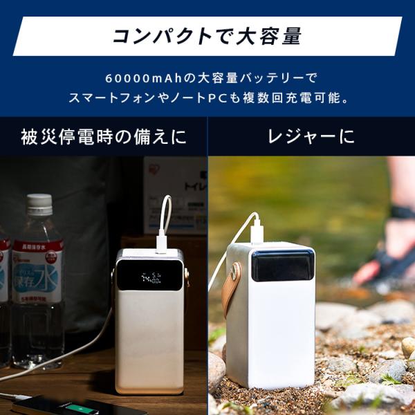 ポータブル電源 小型 モバイルバッテリー 大容量 バッテリーステーション 充電 アイリスオーヤマ IBT-A60100-W 安心延長保証対象