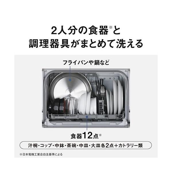 パナソニック(Panasonic) NP-TSK2-W ホワイト 食器洗い乾燥機 庫内容量約36L ストリーム除菌洗浄 50℃ 高圧水流 スリム 食洗 卓上 食洗機 食洗器
