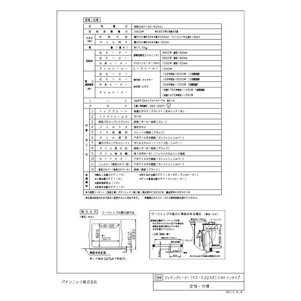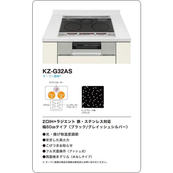 パナソニック IHクッキングヒーター KZ-G32AS トッププレート ビルトイン 幅60cm 2口IH+ラジエントヒーター KZG32AS