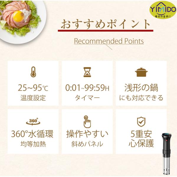 【即納】YiMiDO 低温調理器 BON012 Pro 1100Wハイパワー スロークッカー 低温調理器具 日本向けに設計 24時間 予約機能 IPX7防水 温度設定 五重安心保護