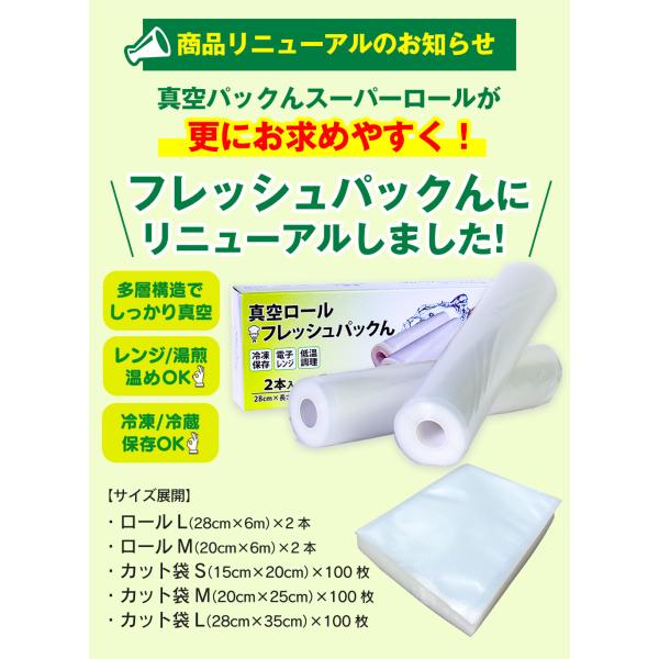 真空パック 袋 エンボス ロール 20cm × 6m 28cm × 6m 4本 1本あたり670円 真空パック機 袋 フレッシュパックん 真空パック器 家庭用 交換用 L M 79657-13