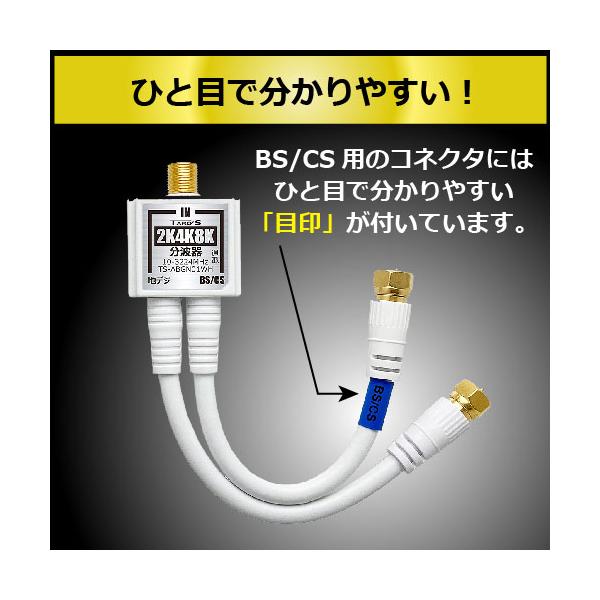 アンテナ分波器 4K8K放送 ケーブル付き 出力 ケーブル一体型 3224MHz BS CS 地デジ CATV 対応 ホワイト 2.5C極細ケーブル 15cm TS-ABSN03WH TARO'S