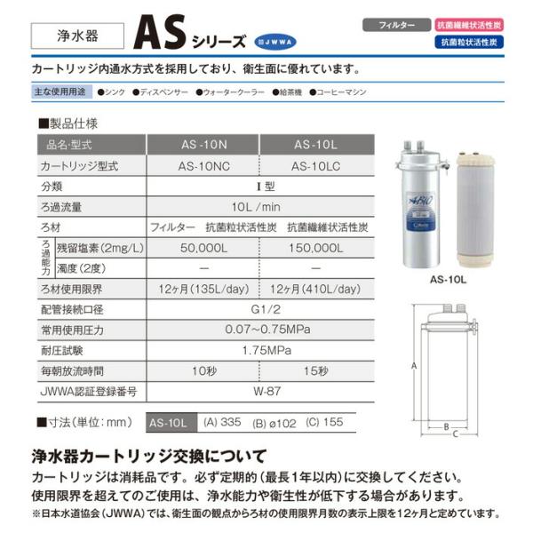業務用浄水器 I型 ASシリーズ 浄水器 クリタック AS-10L 浄水器本体+カートリッジ 【直送 代引不可】