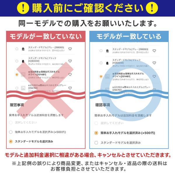 モデルと追加料金選択に相違がある場合キャンセルします