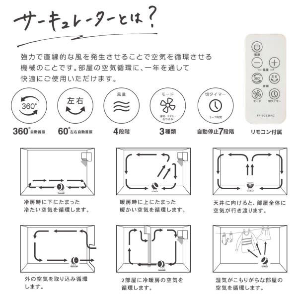 360°サーキュレーター リモコン付き ホワイト|FF-SQ836AC 00-6420 オーム電機