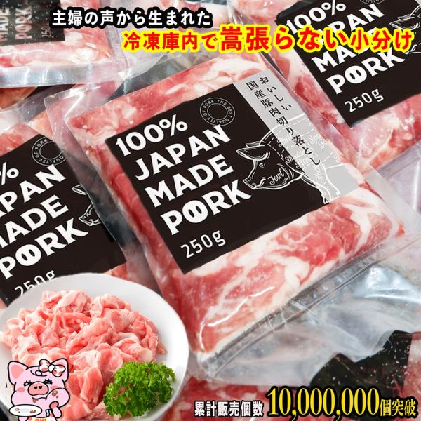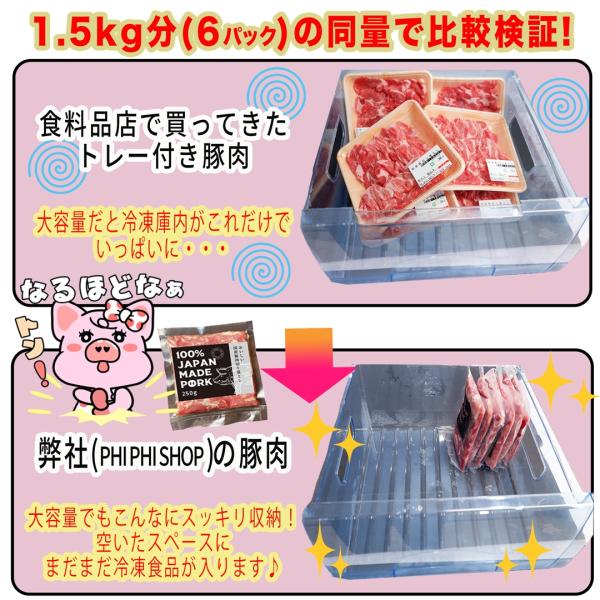 冷凍庫内で嵩張らない 国産 豚肉 切り落とし 便利な小分け 6kg(250g × 24パック) 製造日より8ヶ月 冷凍保管可能 便利な小分け 長期保存 非常食