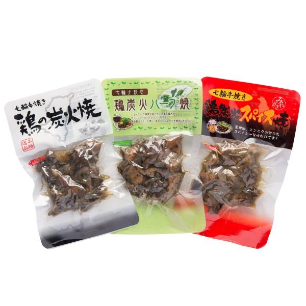 鶏の炭火焼 3種食べ比べ お試し セット A 3袋 宮崎名物 七輪手焼き 鶏の炭火焼き 宮崎かしわや おつまみ 肉 有限会社平和食品工業 ポスト投函便 ポイント消化