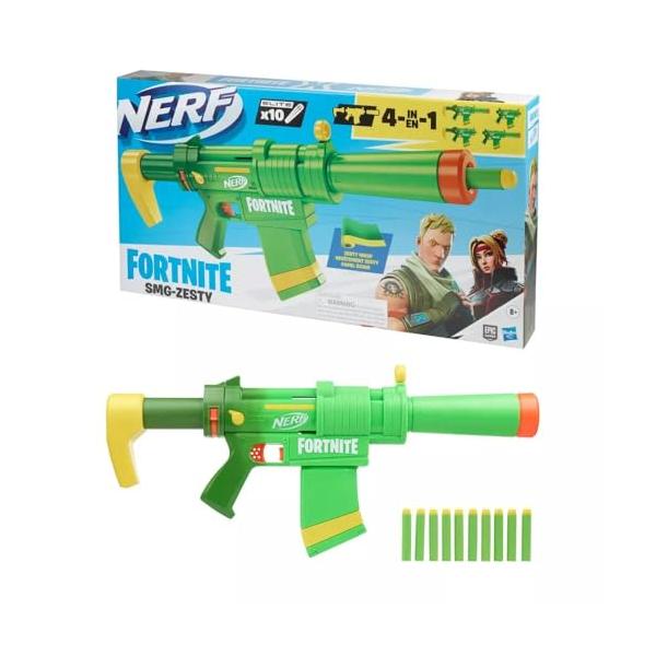 NERF Fortnite SMG-Zesty エリートダーツブラスター -- 取り外し可能なストックとバレル 取り外し可能なダーツ10個 公式エリートダーツ10個