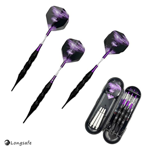 マイダーツ セット 矢 アルミ シャフト初心者 中級者 入門用 ダーツ 紫 バレル フライト チップ 2BA ソフトダーツ ケース 付き(DAR20-PL)