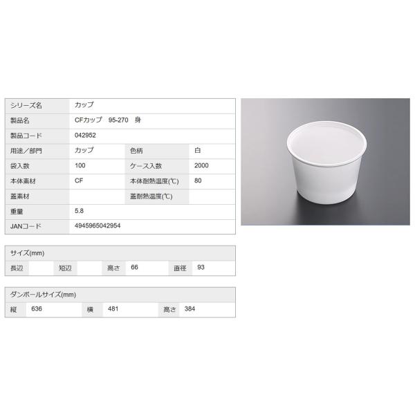 中央化学(Chuo Kagaku) 使い捨て 容器 テイクアウト ランチ 弁当 日本製 CFカップ 本体 100枚入 直径9.3×6.6cm 95-2
