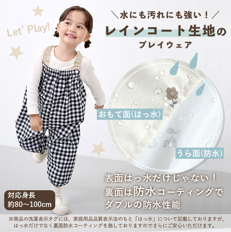 遊び着 つなぎ 防水 砂場着 おしゃれ プレイウェア 調節可能 ベビー キッズ 男の子 女の子 撥水 80〜100cm対応 dk050