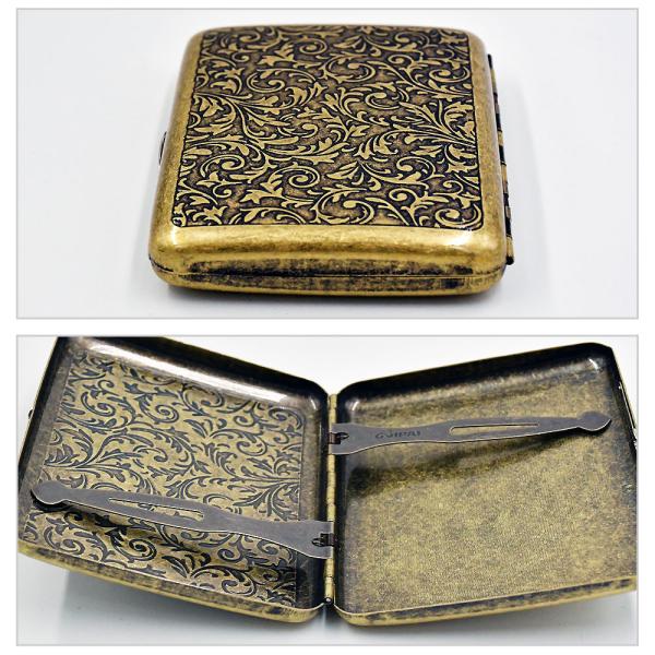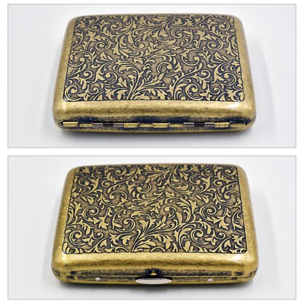 ボーナスストア対象 シガレット ケース レギュラー アラベスク 唐草 牡丹柄 無地 ビンテージ加工 銅 ブロンズ ゴールド 本数管理 たばこけーす