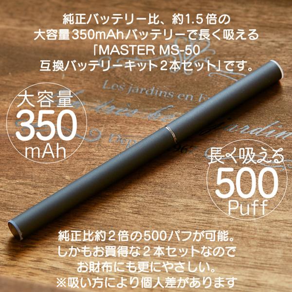 互換バッテリーキット MASTER MS-50 2本セット 350mAh 500パフ USBチャージャー LED 水蒸気多め 味濃いめ 長く吸える 累計販売数1300本突破!