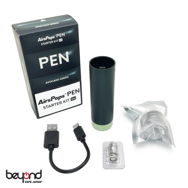 【AIRSCREAM】AirsPops PEN Starter Kit [2ml] 全3色 カートリッジ コイル付き チューブタイプ デバイス オートパフ搭載 電子たばこ 2mlタンク シンプル