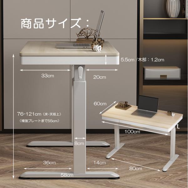 昇降デスク 手動 昇降テーブル 幅100cm 引き出し パソコンデスク 勉強机 スタンディングデスク テレワーク 高さ調節 76-121cm 在宅ワーク オフィスデスク