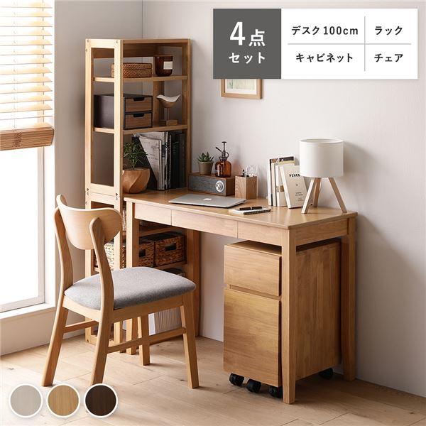 〔旧仕様〕 天然木 デスクシリーズ 4点セット デスクセット 〔 デスク 100cm幅 + ラック + キャビネット + チェア 〕 パソコンデスク パソコンチェア Keiju ...
