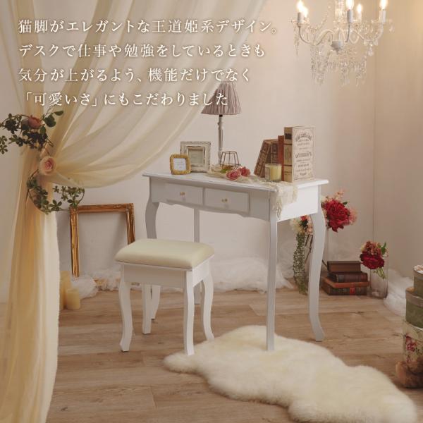 デスク チェア セット 白 木製 収納 オシャレ 80 シンプル パソコンデスク PCデスク 猫脚 可愛い 姫系 かわいい 机 ドレッサー テーブル ミシン 台 マリー