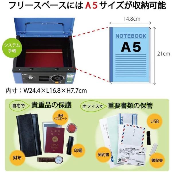 カール事務器 手提げ金庫 キャッシュボックス A5 ブルー CB-8470