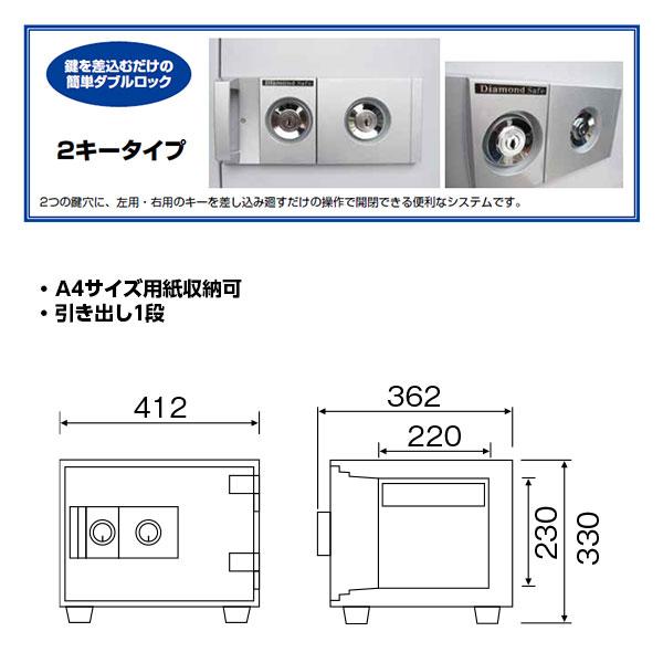 DW30-1 ダイヤセーフ 家庭用金庫 2キータイプ(シリンダー(鍵)式) 30分耐火 30分耐火 29kg 17L A4サイズ用紙収納