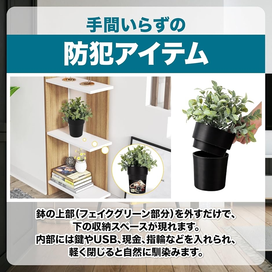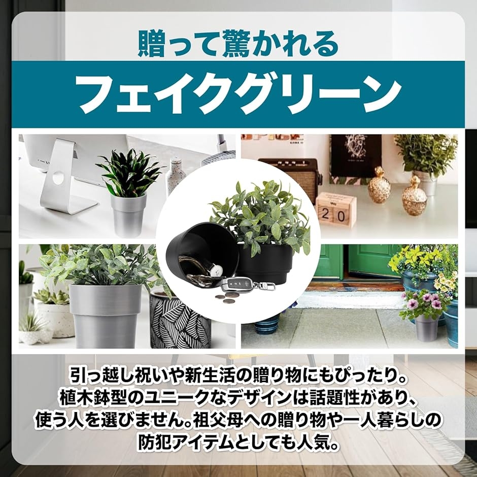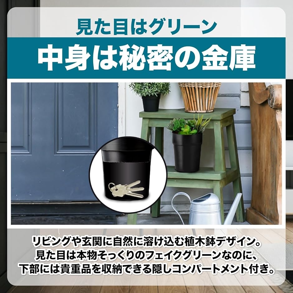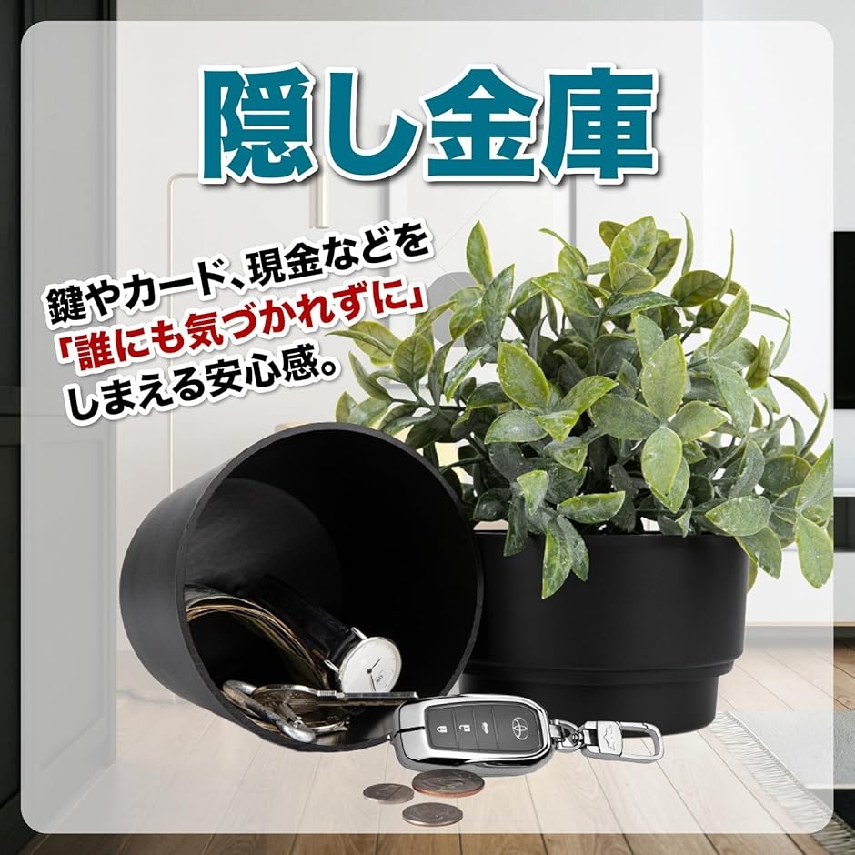 フェイクグリーン型隠し金庫 植木鉢 貴重品収納 コンパクト インテリア雑貨 (ブラック)
