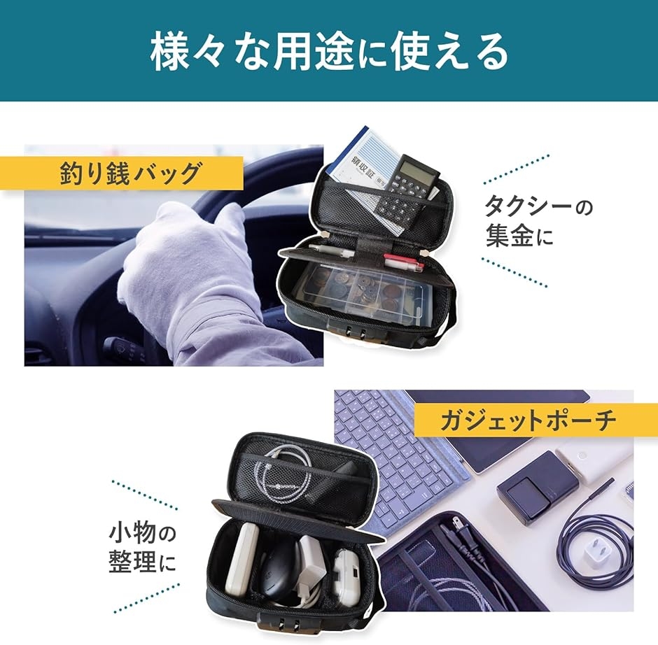 タクシー用釣り銭バッグ 家計管理 ポーチ 釣り銭ケース 集金ポーチ ガジェットポーチ 小型 手提げ金庫 (ネイビー(ノーマルタイプ))