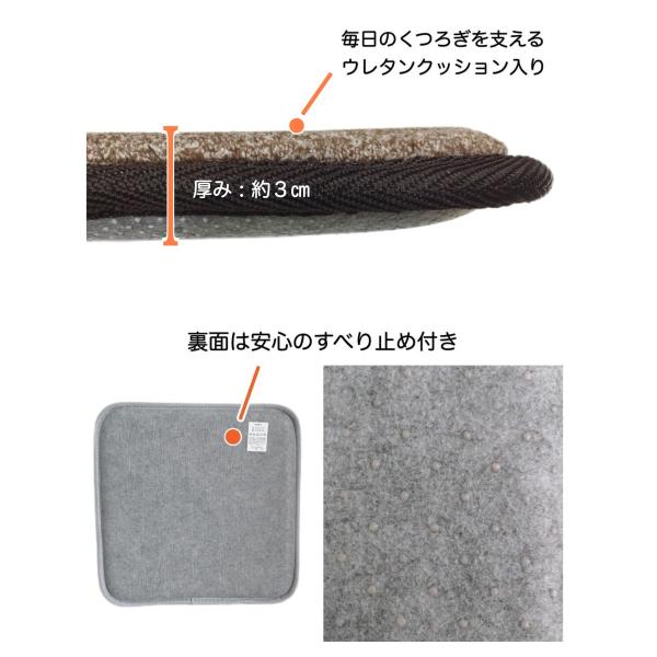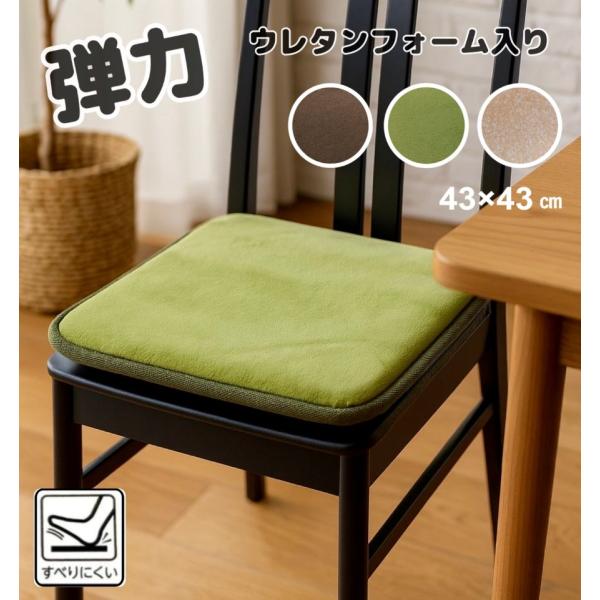 シートクッション 車 ウレタンフォーム入り 椅子用 腰痛対策 フロアクッション 座布団 無地 グリーン ベージュ ブラウン 約43×43cm 厚み3cm すべり止め付き
