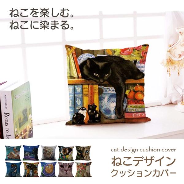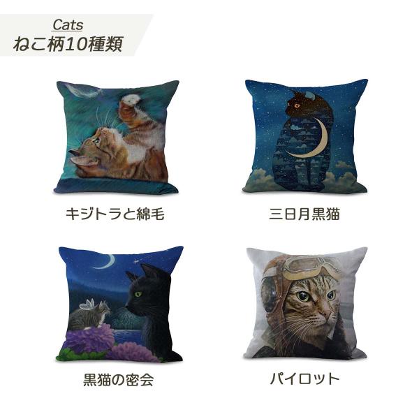 クッションカバー 猫 ねこデザインクッションカバー 45×45 猫柄 冬 綿麻 かわいい 選べる 10種類 洗える コットンリネン 正方形 角型 四角