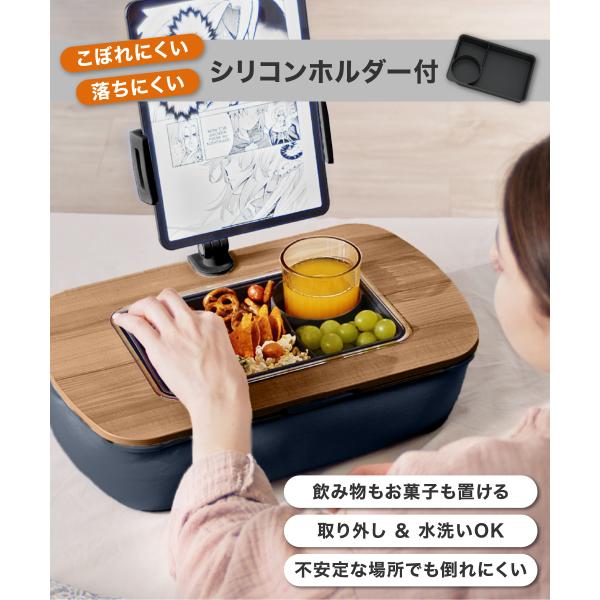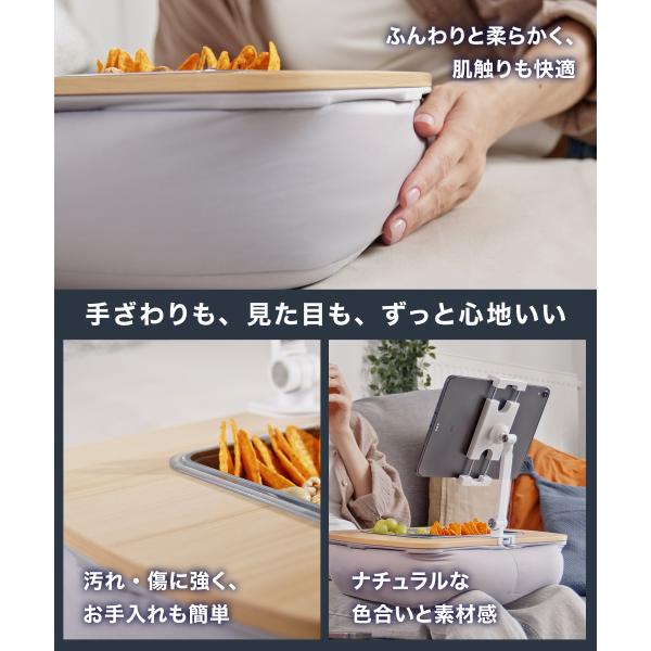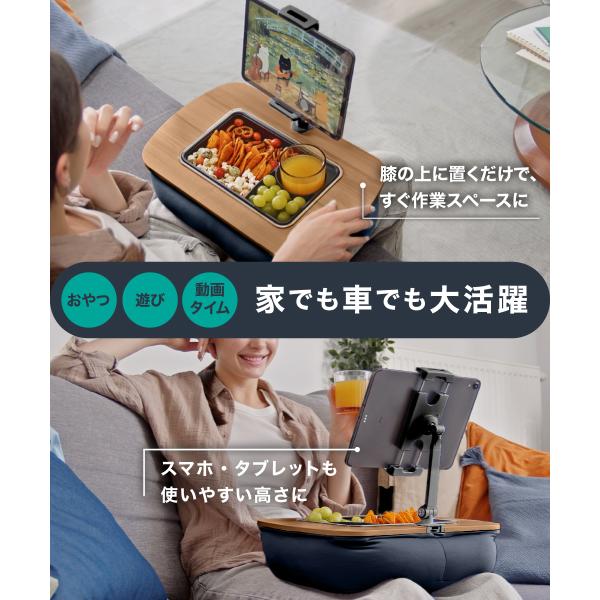 LOE(ロエ) 膝上テーブル カップホルダー付き テーブルクッション 車中泊・おやつ・お絵かき対応 ビーズクッション膝上デスク