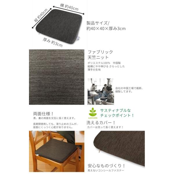 椅子用 クッション 座布団 シート 座面 チェアパッド カバー洗える 低反発ウレタン チップ 40×40 ウェル リブ 4枚組