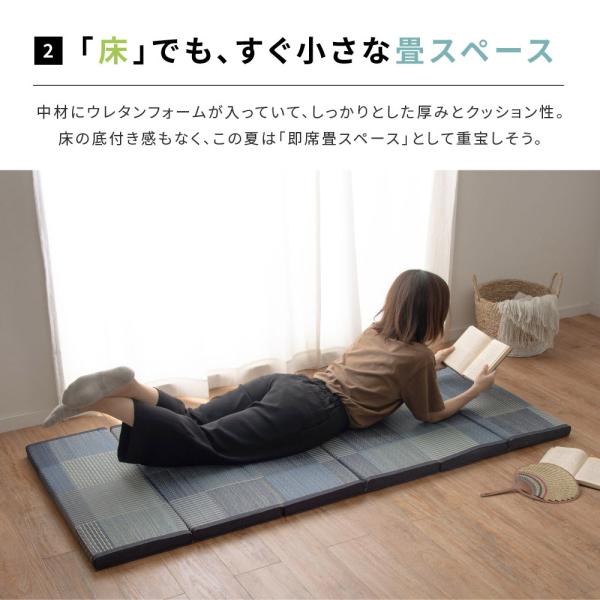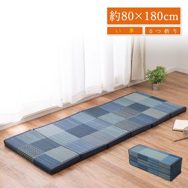 ごろ寝マット お昼寝マット おしゃれ 昼寝 い草 デニムパッチ イ草 井草 6つ折りマットレス 抗菌 防臭 約80×180cm