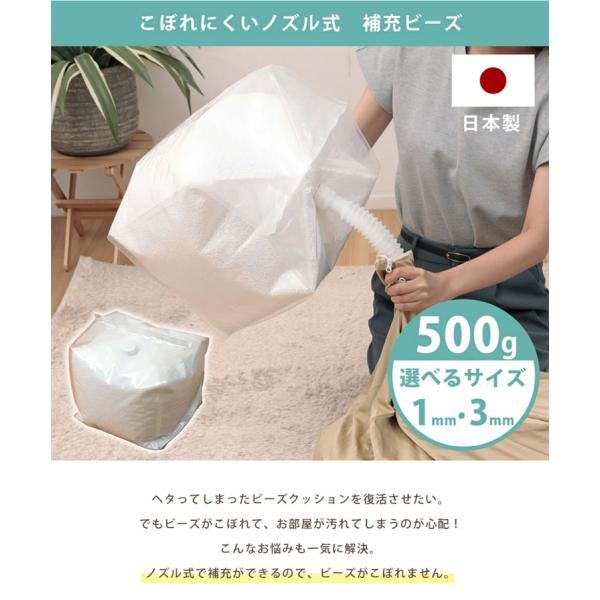補充用ビーズ 補充ビーズ 日本製 こぼれにくい 選べる 1mm 3mm 500g 補充用 ノズル付き 詰め替え ビーズクッション 国産 マイクロビーズ 1000g 代引不可