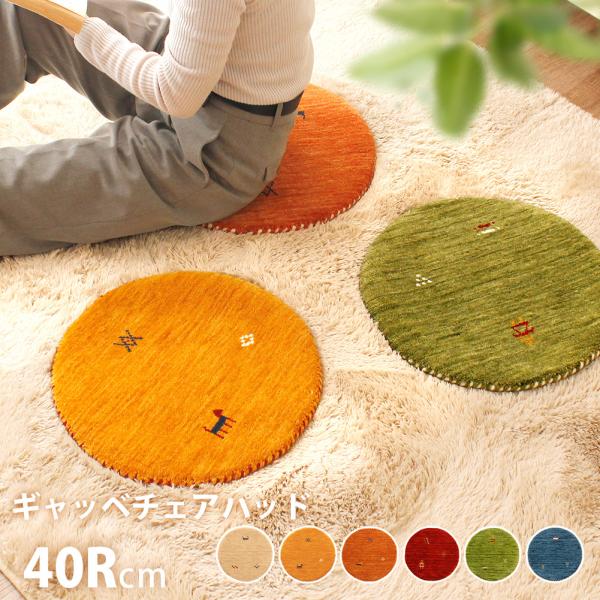 チェアパッド 丸型 ギャッベ 座布団 ウール チェアクッション 直径40cm おしゃれ シータ 爆買