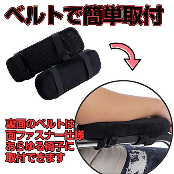 肘掛けクッション 肘置き 肘掛けカバー アームレスト 低反発スポンジ ベルト固定式パッド カバー水洗い可 オフィスチェア 車椅子 汎用 2個セット FSD23575S2