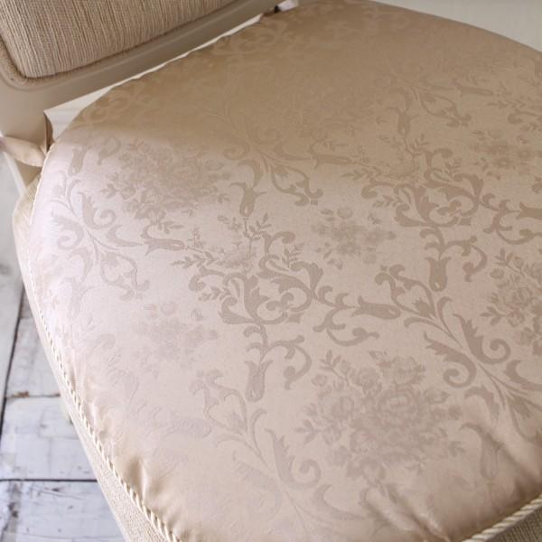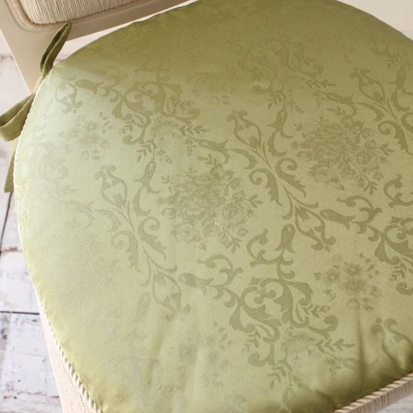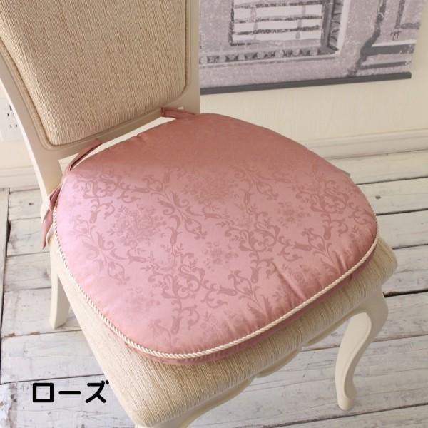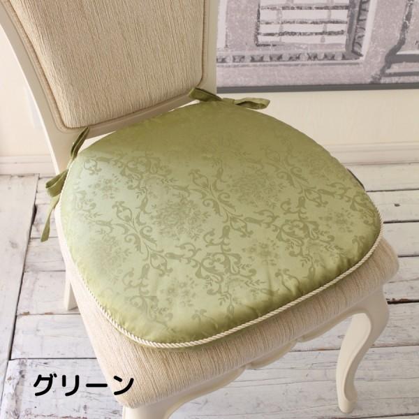 チェアパッド 紐付き シートクッション 撥水 はっ水加工 ダマスクローズ ローズ グリーン ライトブラウン ブルー 椅子クッション ダマスク柄 薔薇 ダイニングチ