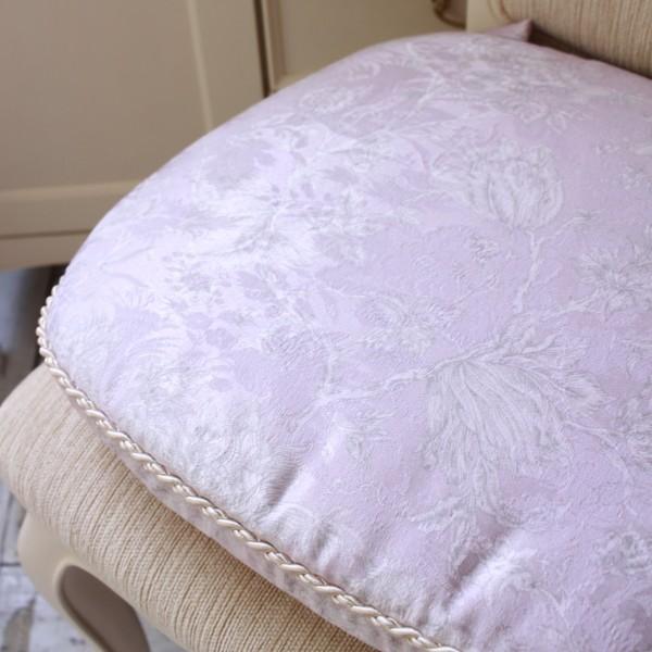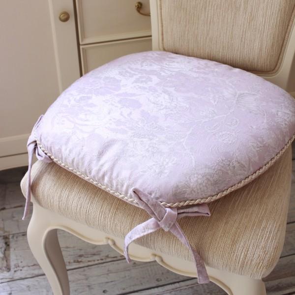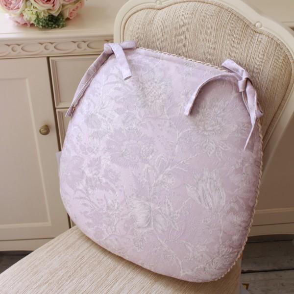 撥水 チェアパッド ピンク かわいい シートクッション 紐付き ラベンダー 43×45cm はっ水 座面カバー ジャガード織 布製 レース チェアクッション 椅子クッシ