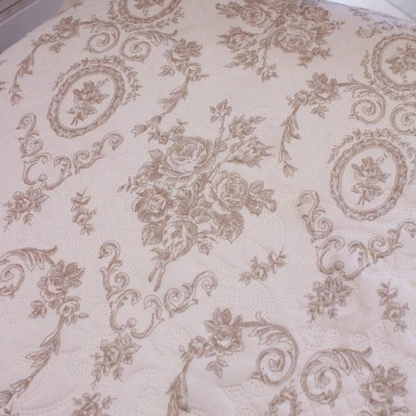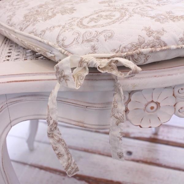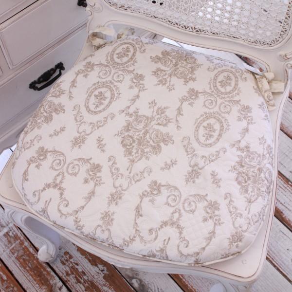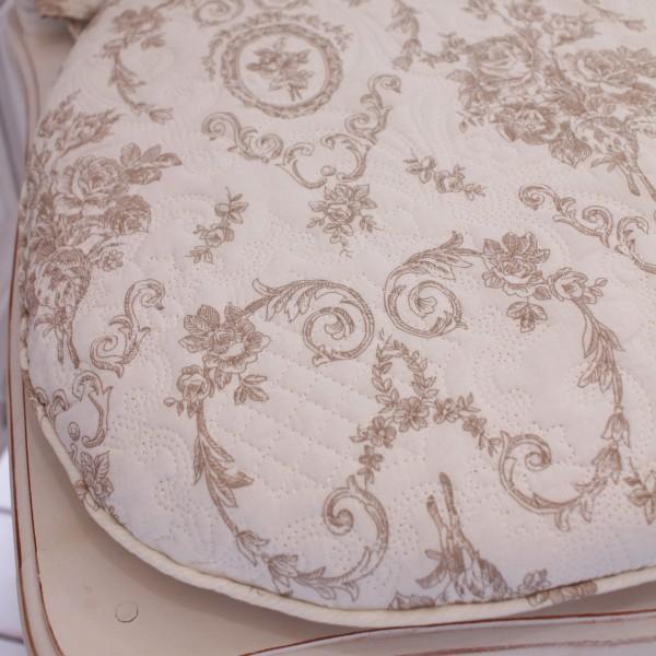 ローズ柄 シートクッション チェアパッド キルト 可愛い ベージュ アントワネットローズ バラ柄 椅子カバー 洗濯可 綿100% コットン シートカバー アンティーク