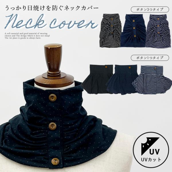 ネックカバー UVカット ボタン マジックテープ 紫外線対策 日焼け対策 薄手 軽量 ボーダー ドット 送料無料