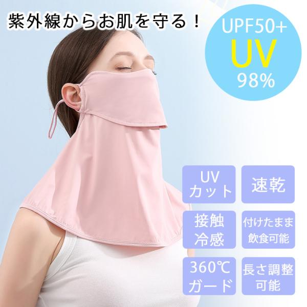 フェイスカバー UV 冷感 マスク -5℃ 遮光 紫外線 UPF50+ ゴルフ テニス スポーツ 夏用 日焼け防止 日よけ おしゃれ 呼吸しやすい 顔 首 アレルギー肌 作業用