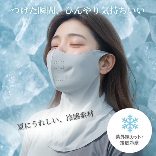 日焼け止めマスク フェイスカバー UVカット UPF50+ 接触冷感 小顔見え 首までカバー 男女兼用 ストレッチ素材 夏用 紫外線対策マスク