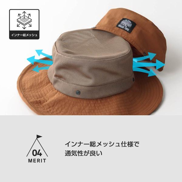 登山 キャンプ メッシュハット 総メッシュで乾き易い 抗菌防臭加工 NAIGAI TRAIL サイズ調整可能 アウトドア サファリハット 帽子 最短翌日発送 90370802