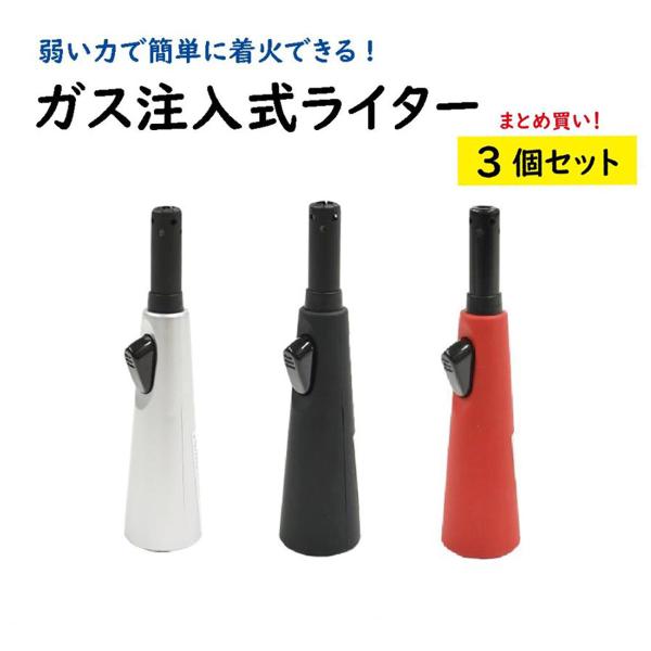 ライター ガスライター 優火 スリム 自立式 ワンタッチ ガス注入タイプ 3色セット 高齢者向け 簡単 送料無料