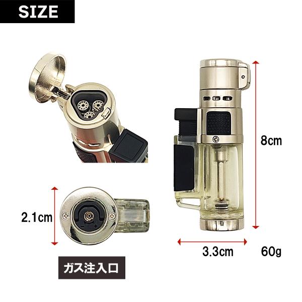ライター 強火力 トリプルパワージェット式 ターボ式 着火ライター ガス詰替可タイプ ストラップホール付 色ランダム 3個セット 送料無料