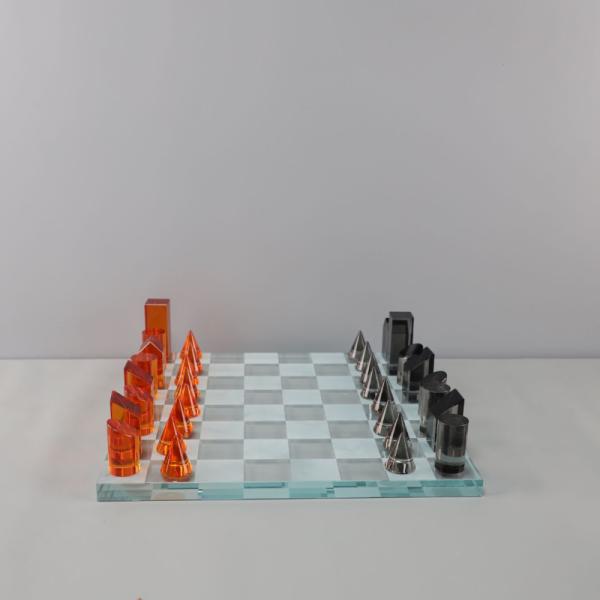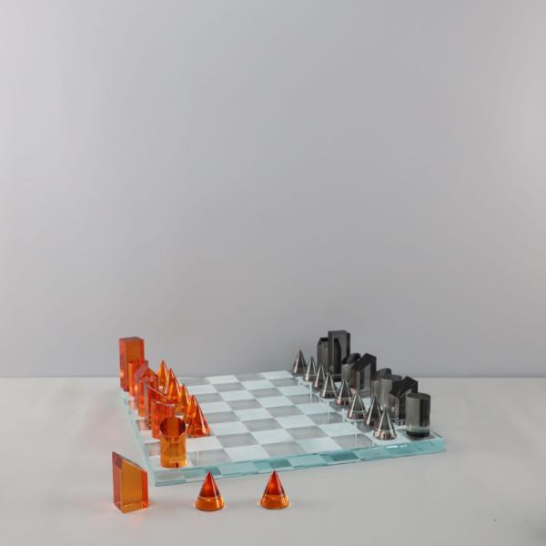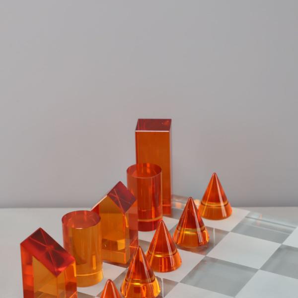 モダンチェスセット オブジェ デザインチェス クリスタル風 インテリア雑貨 ホワイト オレンジ ブラック ギフト アートボード 幾何学 ガラス調 置物 装飾品