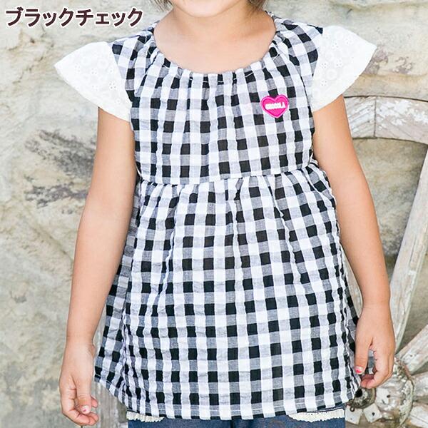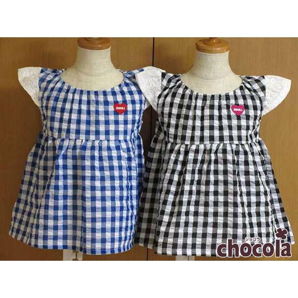 ●均一セール●ショコラ(chocola) ギンガム&無地 ハイウエスト チュニックTシャツ 半袖(90cm・100cm・110cm・120cm・130m)アウトレット