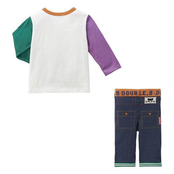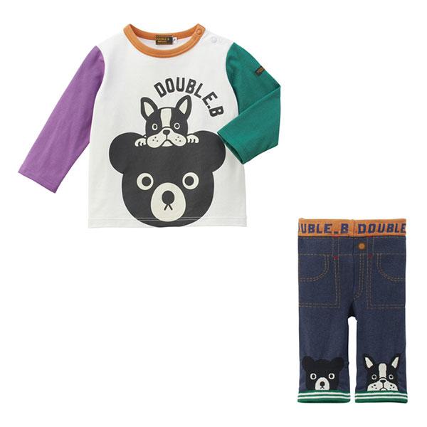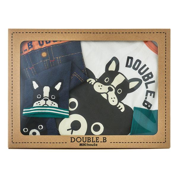 ●取り寄せ商品●ミキハウス ダブルビー mikihouse 長袖Tシャツセット BOX付き(フリー(70-80cm))男の子 出産 祝い ロンT パンツ セット