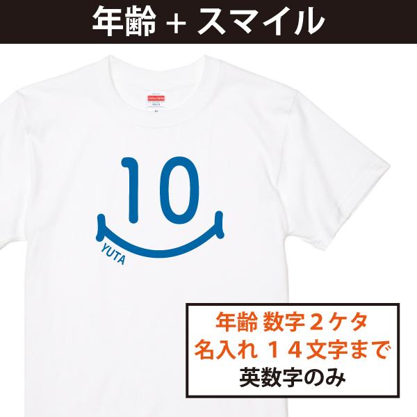 名入れ 年齢 Tシャツ スマイル プレゼント オリジナル 誕生日 記念日 かわいい 家族写真 お揃い リンクコーデ 還暦 古希 お誕生日会 白 おそろい 1500 085