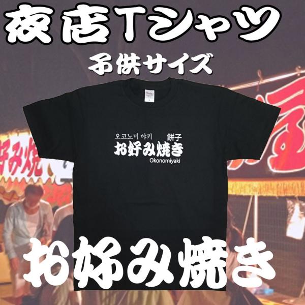 子供サイズ お好み焼き お祭り 屋台 夜店 出店 Tシャツ 半袖 ブラック