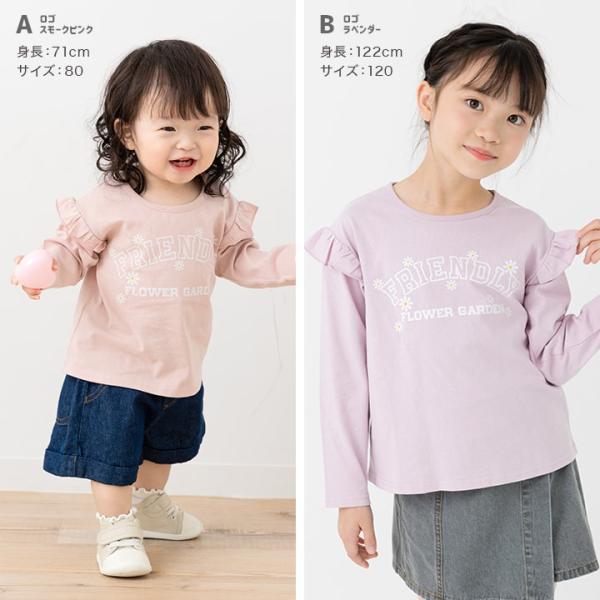 ネコポス送料無料 キッズ 長袖 Tシャツ ベビー服 子供服 ロンT 肩フリル 女の子 綿100% 春 80 90 100 110 120 130 140cm [M便 1/1]